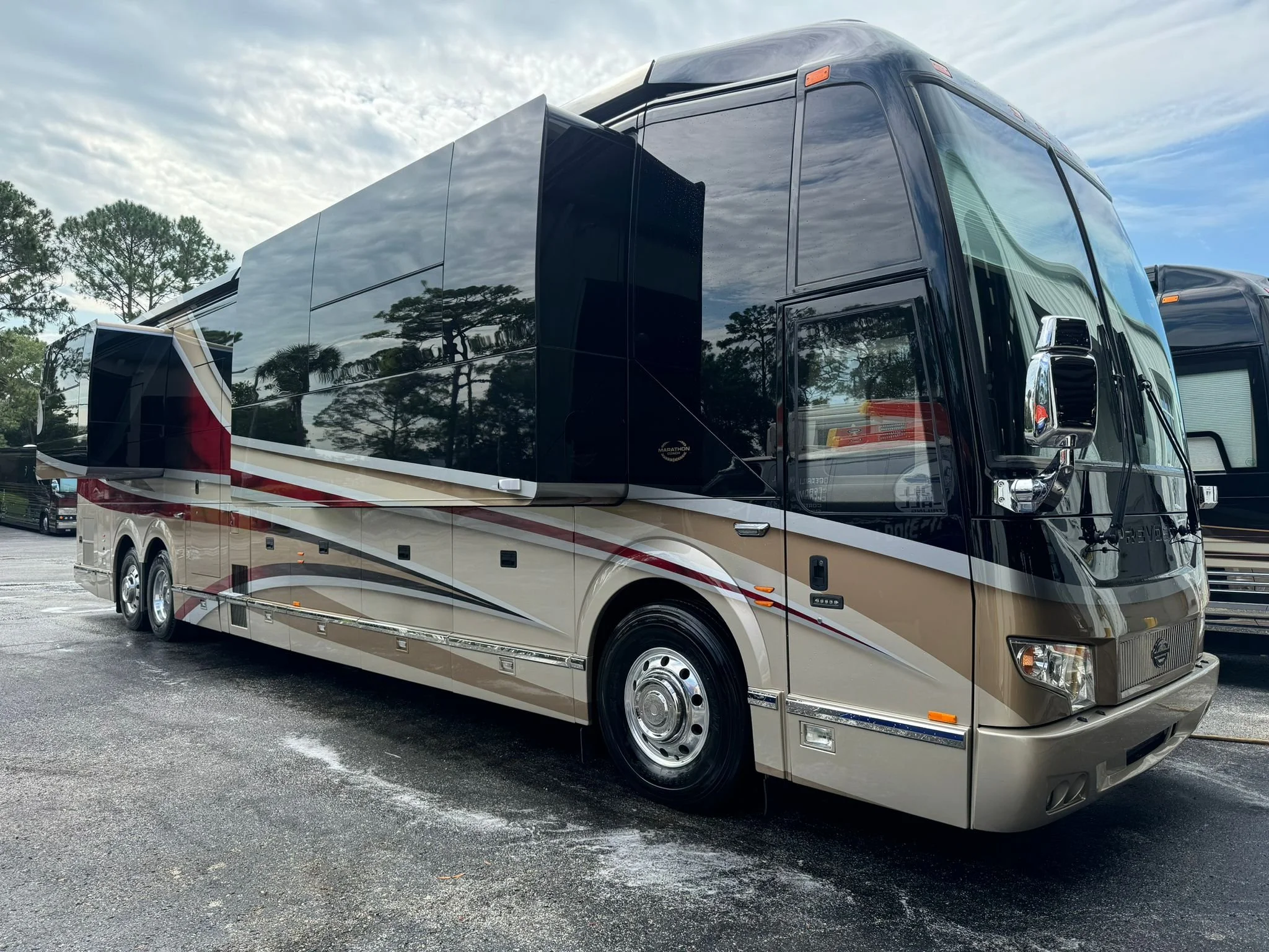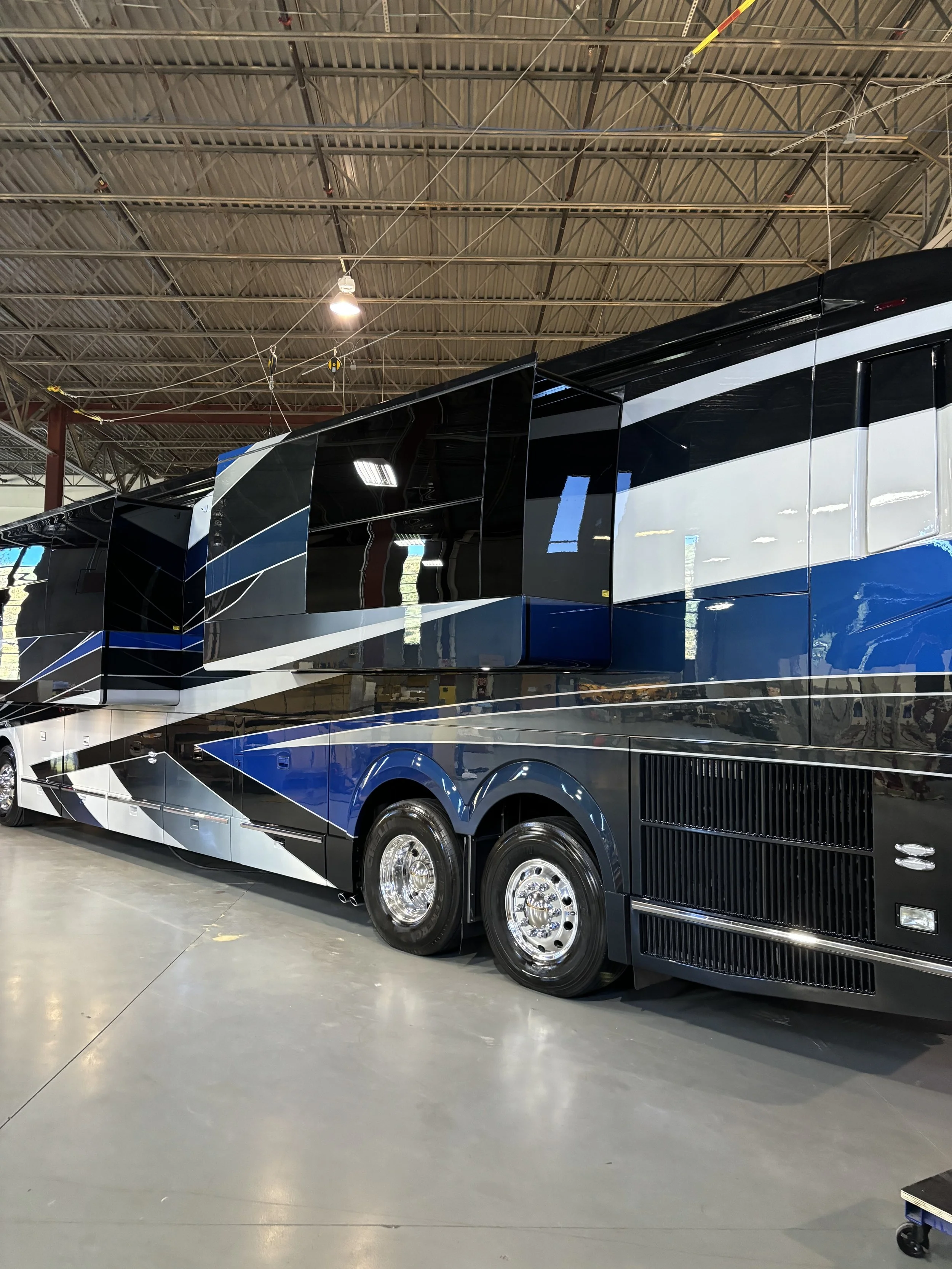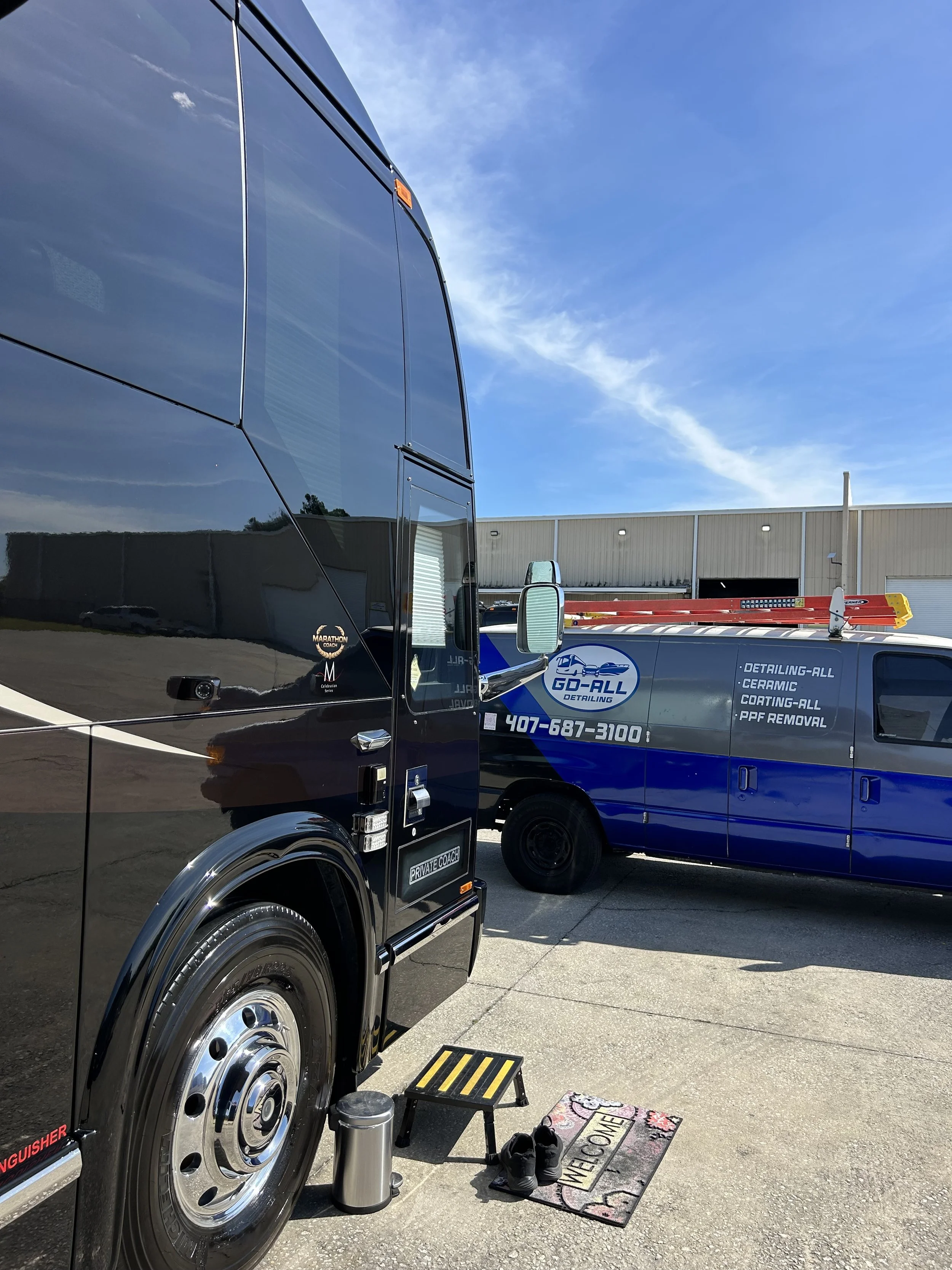 Servicing Class A, B, and C motorcoaches for exterior wash, wax, and wheel polish. Interior detailing available for Class A motorcoaches.